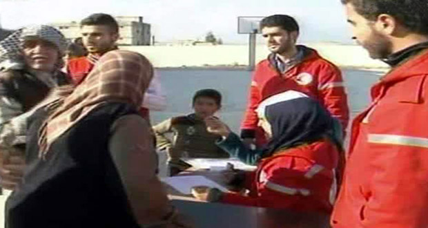 وزع فرع منظمة الهلال الأحمر العربي السوري في القنيطرة اليوم 104 سلات غذائية ومواد إغاثية على الأسر المهجرة جراء الاعتداءات الإرهابية والمقيمة في مركزي الإقامة المؤقتة بمدرستي الشهيد أحمد البكر في قرية الكوم و خان أرنبة المحدثة.