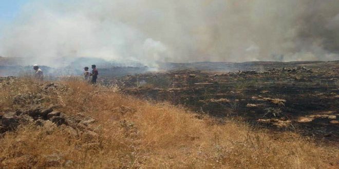 أخمدت وحدة إطفاء شهبا في محافظة السويداء بالتعاون مع الأهالي اليوم حريقاً شب في أراضٍ زراعية بقرية داما بريف المحافظة الشمالي الغربي وألحق أضراراً بمحاصيل حقلية تتجاوز مساحتها 150 دونماً.