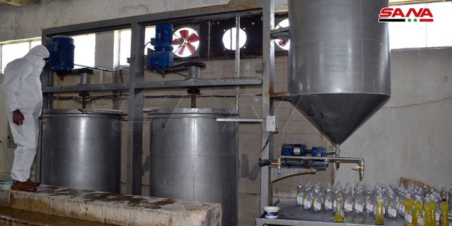 مؤسسة الإسكان العسكري بحلب تواصل إنتاج مواد التعقيم والمنظفات لتغطية حاجة السوق