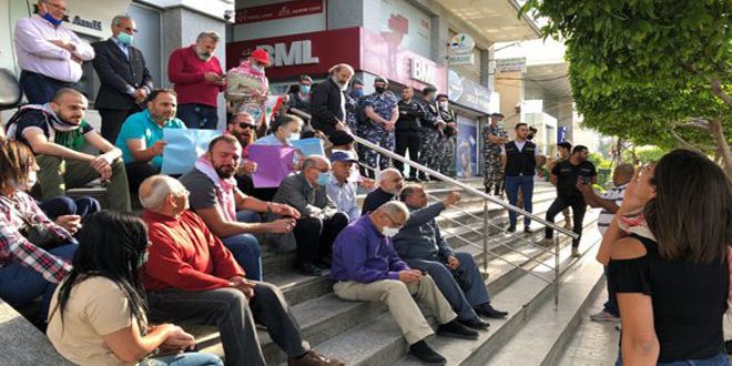 وفي صور اعتصم عدد من المحتجين أمام مبنى السرايا الحكومية احتجاجاً على الأوضاع الاقتصادية المتردية رافعين لافتات تندد بالسياسة المالية والمصرفية مؤكدين الاستمرار في الاعتصام للمطالبة بحقوقهم المهدورة.