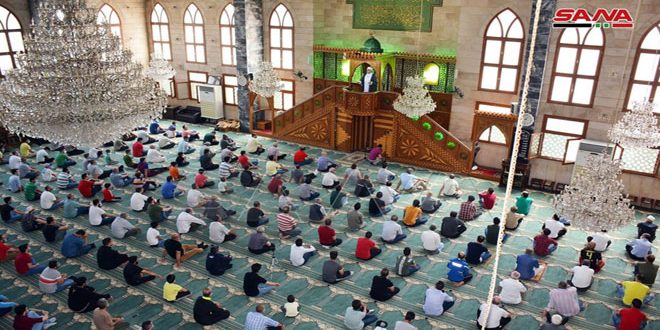 وفي حماة بين خطيب جامع النوري محمد المحمد أن تقيد المصلين بالإجراءات تعبير عن الالتزام بالأخلاق والقيم الإسلامية فيما أوضح سليمان بستاني من القائمين على جامع الأعلى الكبير أن الجامع فتح أبوابه للمصلين قبل صلاة الجمعة بـ 20 دقيقة حرصاً على تنظيم الجلوس وتحقيق مسافة أمان بين المصلين منوهاً بدور الشباب المتطوعين في تنظيم الصلاة بمختلف المساجد.