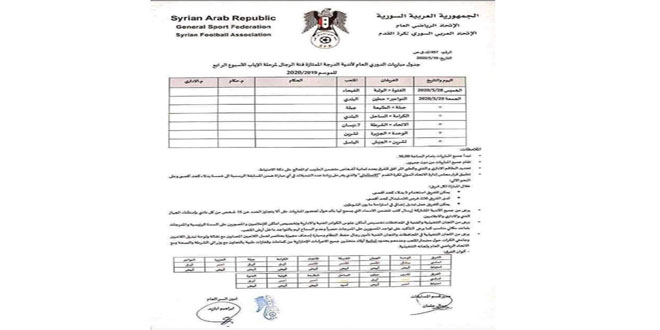 أعلن اتحاد كرة القدم بشكل رسمي عن مواعيد مباريات الجولة السابعة عشرة (الرابعة إياباً) من الدوري الممتاز بعد توقفه نحو شهرين فيلتقي في الثامن والعشرين من الشهر الحالي الفتوة مع الوثبة على ملعب الفيحاء بدمشق.