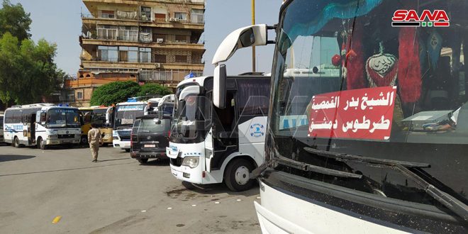 وبدأت وسائل النقل منذ الساعة السادسة والنصف صباحاً بالتحرك من مراكز الانطلاق الأربعة بدمشق وهي كراج البولمان بالقابون ومركز انطلاق الشمال بالعباسيين ومركز انطلاق المنطقة الجنوبية كراج درعا والسويداء في باب مصلى وكراج السومرية حيث شهدت تلك المراكز حركة نشطة.