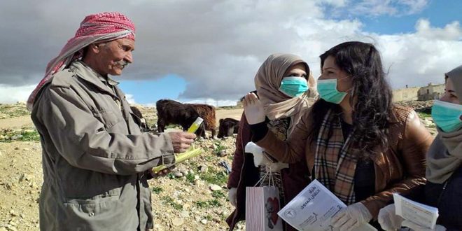 من إطار مشروع صحتك.. مسؤولية الذي يقوده ملتقى سوريانا للسيدات ولدعم الإجراءات الاحترازية التي يكرسها الفريق الحكومي لمواجهة فيروس كورونا المستجد قامت مؤخراً مجموعة من سيدات الملتقى بحملة توعية صحية في عدد من مناطق ريف دمشق هدفها مساعدة الأسر المحتاجة ونشر الثقافة الصحية والوقائية الصحيحة.