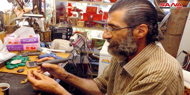 تفرد بأعمال حملت طابع التنوع.. الفنان وليد نعيم وعلى مدار أكثر من ثلاثين عاما جمع بين النحت على الخشب والستريوبور “ألواح العزل الحراري” والحجر والحفر ضمن ثمار الفواكه والخضار والمعدن والرسم والحرق داخل الخشب والطباعة اليدوية على البازلت فضلا عن مجسمات فنية من توالف البيئة.