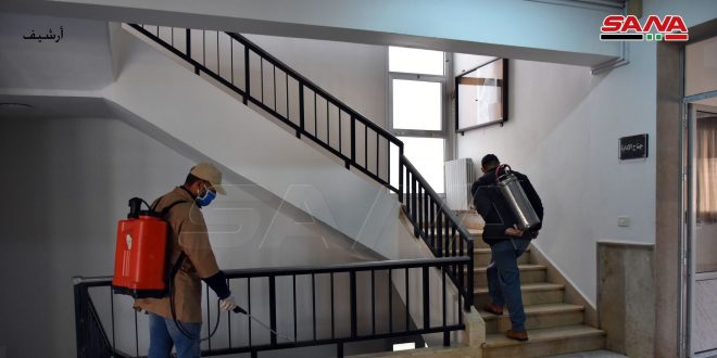 استعداداً لعودة الطلبة إلى مقاعد الدراسة اتخذ فرعا جامعة دمشق بالسويداء والاتحاد الوطني لطلبة سورية في المحافظة حزمة من الإجراءات في كليات ومعاهد فرع الجامعة بالسويداء لضمان سلامة وصحة الطلبة في إطار الإجراءات الحكومية للتصدي لفيروس كورونا.