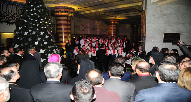 بمناسبة أعياد الميلاد المجيدة اضيئت اليوم شجرة عيد الميلاد في فندق داما روز بدمشق خلال حفل تقليدي سنوي يؤكد معاني نشر المحبة والسلام والتآخي بين السوريين.