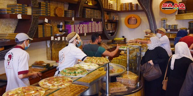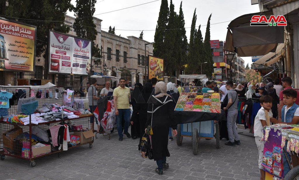 أسواق حماة تشهد ازدحاماً ملحوظاً خلال المساء، استعداداً لاستقبال عيد الفطر المبارك