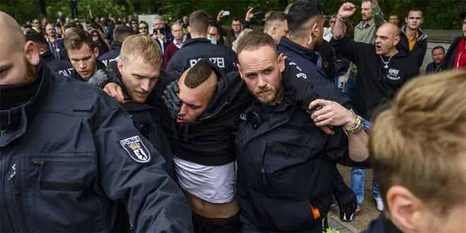 نظمت عشرات المظاهرات في كل أنحاء ألمانيا أمس في إطار تحرك احتجاجي يقام كل سبت منذ مطلع نيسان الماضي ضد القيود المفروضة لاحتواء تفشي فيروس كورونا المستجد في البلاد.