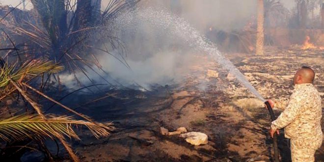 وذكر معاون رئيس مصلحة زراعة تدمر أحمد يوسف في تصريح لمراسل سانا أن مصلحة الزراعة والدفاع الوطني والجهات المختصة في تدمر تعمل على إخماد الحريق الذي لم تعرف أسبابه حتى الآن.