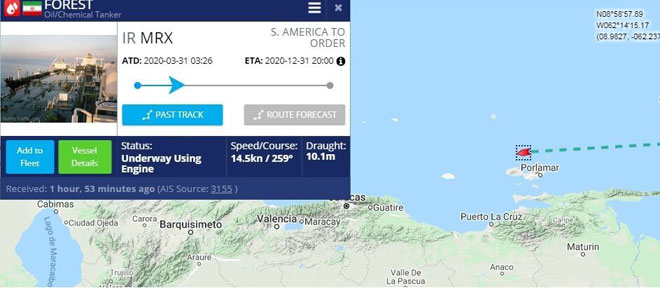 وصلت ناقلة النفط الإيرانية الثانية (ذي فورست) اليوم إلى سواحل فنزويلا متحدية الحصار الأمريكي وإجراءات الحظر الأحادية.