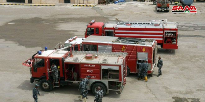 رفع فوج إطفاء ديرالزور جاهزيته على مدار الساعة إلى أقصى درجة مع دخول موسم حصاد القمح وارتفاع درجات الحرارة.