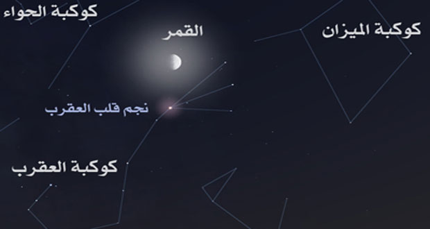 بعد حدوث ظاهرة الاقتران العلوي لكوكب زحل مع الشمس والتي أصبح فيها هذا الكوكب في الجهة المقابلة من المجموعة الشمسية يعود كوكب زحل للظهور مجدداً حيث يشاهد في الصباح الباكر من يوم غد الجمعة مقترناً مع الهلال القديم لشهر صفر في كوكبة الميزان فوق الأفق الشرقي قبيل شروق الشمس.