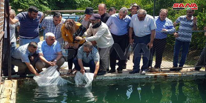 وزعت الهيئة العامة للثروة السمكية إصبعيات سمكية نوع كارب حرشفي “ظاظان” على عدد من المواطنين في محافظة طرطوس وذلك ضمن مشروع المزارع السمكية الأسرية الذي تنفذه الهيئة.
