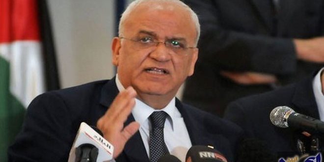 جدد أمين سر اللجنة التنفيذية لمنظمة التحرير الفلسطينية صائب عريقات دعوة دول العالم إلى الاعتراف بدولة فلسطين واتخاذ إجراءات فورية لمنع الاحتلال الإسرائيلي من تنفيذ مخططاته الاستيطانية بضم أجزاء من الضفة الغربية إلى كيانه.