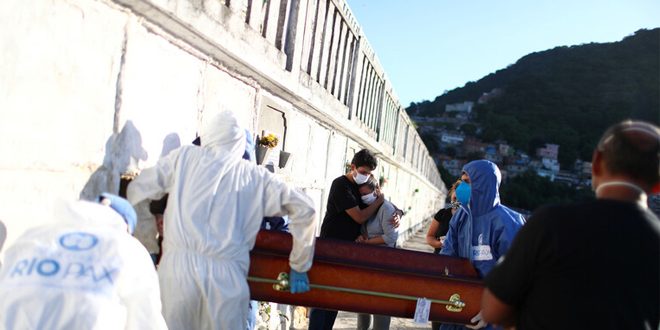 ونقلت رويترز عن وزارة الصحة البرازيلية قولها اليوم إن عدد حالات الوفاة الناجمة عن الإصابة بالفيروس ارتفع بواقع 1156 حالة عن اليوم السابق ليصل العدد الإجمالي إلى 26754 وهو ما يقل قليلا عن العدد القياسي الذي سجلته يوم 21 من الشهر الجاري عندما أعلنت وفاة 1188 بالمرض.