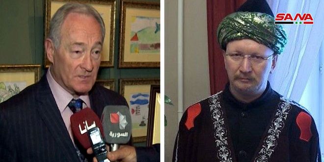 وفي مقابلة مماثلة بين رئيس مركز دراسة القرآن الكريم في جمهورية تتارستان بروسيا الاتحادية الشيخ فريد سلمان أن القرار الأوروبي يشكل جريمة ضد الإنسانية ويدحض مزاعم أوروبا حول الديمقراطية والقيم الإنسانية وبصورة خاصة في ظروف انتشار فيروس كورونا وأيضاً لأن سورية تعاني بشكل خاص من الإرهاب الدولي وتتصدى للعدوان العالمي الإرهابي منذ سنوات.