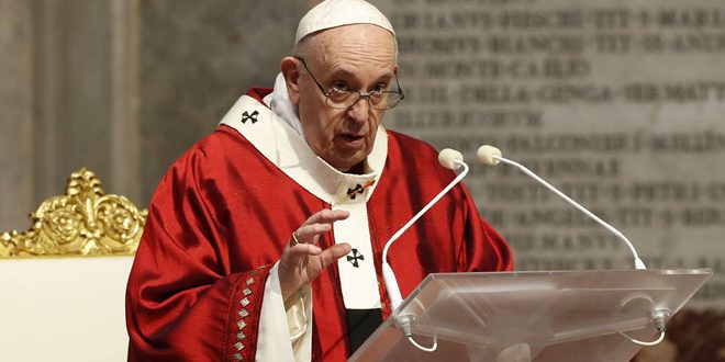 وذكرت رويترز أن البابا فرنسيس دعا خلال ترؤسه لقداس أمس ضم أكبر تجمع في الفاتيكان منذ ما يقرب من ثلاثة أشهر القادة الى اتخاذ موقف بعيد النظر وتقديم المساعدة لأشد الناس احتياجا ووضع حلول اقتصادية واجتماعية طويلة الأمد.