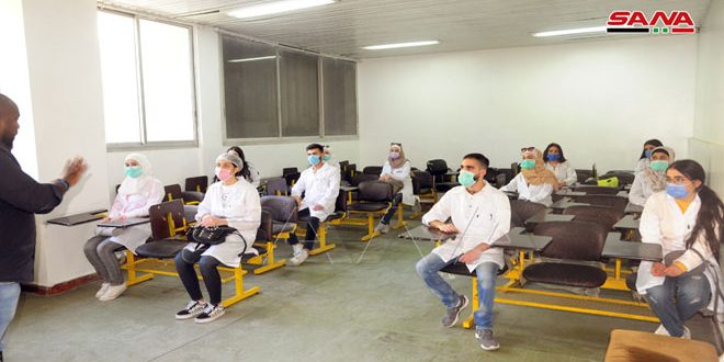 وبين عميد كلية الصيدلة الدكتور محمد ناصر أن الكلية اتخذت كل الإجراءات المطلوبة لحماية الطلبة وتم إعداد البرامج للمحاضرات بحيث تبدأ المحاضرات العملية بتوقيت مختلف عن النظرية لتخفيف الازدحام أثناء دخول الطلاب للكلية إضافة إلى تجهيز مداخل الكلية بأجهزة قياس الحرارة مع توفير مواد تعقيم للأيدي وللمخابر.