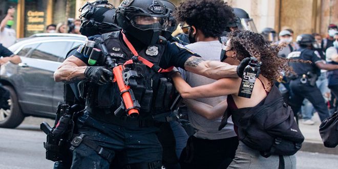 تضيف الشرطة الأمريكية خلال تعاملها الحالي مع الاحتجاجات التي فجرتها جريمة قتل أمريكي من أصول إفريقية صفحة جديدة إلى سجل جرائمها وانتهاكاتها العنصرية الحافل على مدى تاريخها في وقت تواصل فيه سلطات واشنطن ترويج ادعاءات عن الالتزام بمبادئ حقوق الإنسان وحريات التعبير والتظاهر.