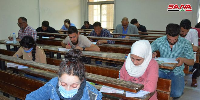 يقدم طلاب التعليم المفتوح في جامعة البعث امتحاناتهم وسط اتخاذ إجراءات مشددة للتصدي لفيروس كورونا وضمان السلامة العامة.
