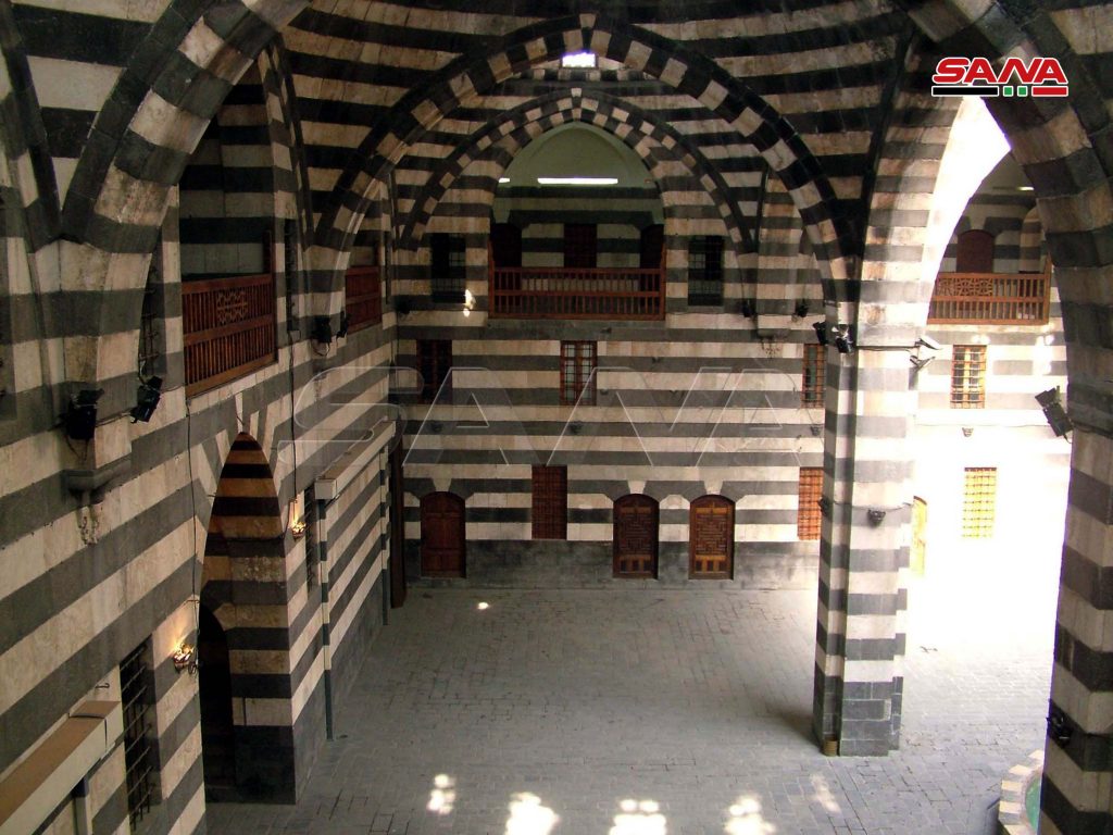 الخان الذي اختارته وزارة الثقافة ليستضيف أنشطة ضمن فعالية “الثقافة في بيتك” ويقع جنوب الجامع الأموي يعود تاريخ بنائه إلى نحو 270 عاما حيث أنجز سنة 1753 على أنقاض قصور أموية ومحلات ودكاكين وأشرف على بنائه معماري دمشقي اسمه ابن سياج كما ذكر أحمد البديري الحلاق في كتابه حوادث دمشق اليومية.
