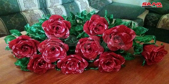 تشكيل مجموعة أزهار بالخرز الملون والأسلاك النحاسية هو الحرفة التي تعمل أحمد على تطويرها بشكل يومي موضحة في حديثها لـ سانا سياحة ومجتمع أن عملها مر بمراحل فيها الكثير من التجارب الفاشلة والناجحة في تصنيع الأزهار إلى أن تمكنت من تكوين تجربتها الخاصة في هذا المجال.