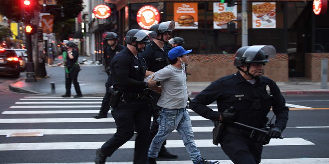 ففي العاصمة واشنطن أطلقت الشرطة الأمريكية الرصاص المطاطي والغاز المسيل للدموع لتفريق محتجين قرب البيت الأبيض وأوقفت عشرات المتظاهرين لانتهاكهم حظر التجول الذي يبدأ عند الساعة السابعة مساء.
