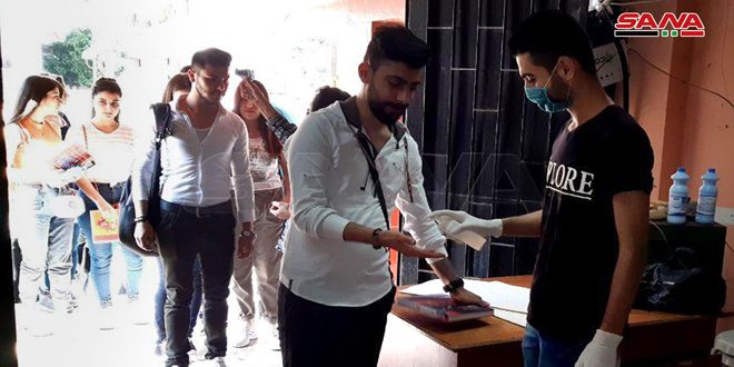 ولفت حديفة لمراسل سانا إلى الحس العالي بالمسؤولية لدى الطلبة والتزامهم بالتعقيم وترك مسافة أمان فيما بينهم ولا سيما أن الوباء لم ينته بعد ومن الضروري تطبيق الإجراءات الاحترازية حفاظا على الصحة العامة.
