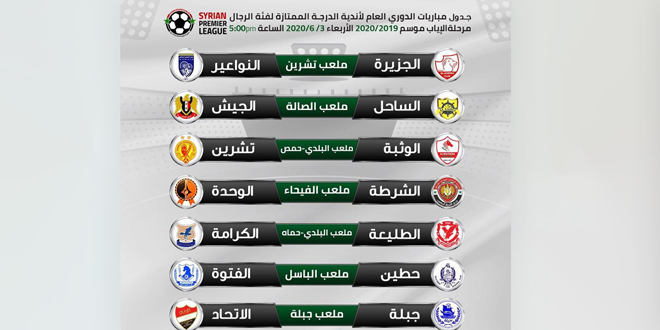 وفي مواجهة تبدو سهلة يلعب الجيش الرابع مع الساحل الثاني عشر وذلك على ملعب الصالة الرياضية في طرطوس ويدخل الفريقان اللقاء بغايات مختلفة فالأول للاقتراب أكثر من المقدمة والثاني للهروب من شبح الهبوط.