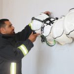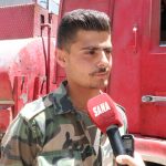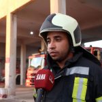 ياسين الدهون آمر زمرة إطفاء يوضح أنه في حال تلقي اتصال بوجود حريق يتم التأكد من كل البيانات وعنوان المكان وحسب نوع الحريق سواء كان حريق مواد صلبة أو سائلة أو كهربائية يتم توجيه السيارات المناسبة مشيرا إلى أنه يتم فرز آليات من الجهات الأخرى مهمتها دعم مهام الفوج وتزويد سيارات الفوج بالمياه.
