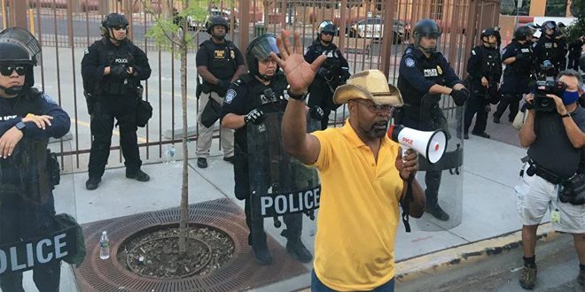 وتتواصل الاحتجاجات على جريمة قتل جورج فلويد الذي لفظ أنفاسه الأخيرة بعد أن قام أحد ضباط الشرطة بتثبيته على الأرض والضغط على عنقه خمس دقائق.