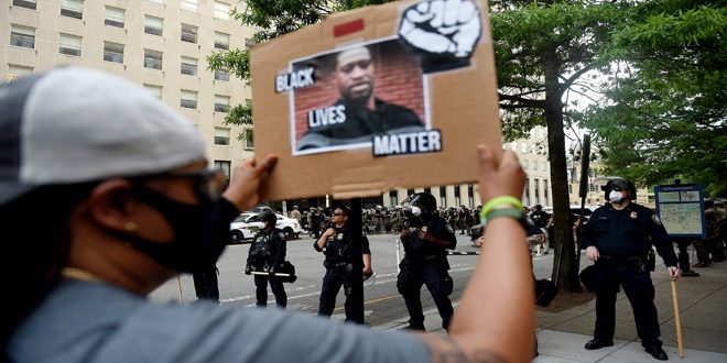وتشهد المدن الأمريكية احتجاجات واسعة ضد عنف وعنصرية الشرطة اثر جريمة قتل الأمريكي من أصول أفريقية جورج فلويد على يد عناصر شرطة فى مينيابوليس في الـ 25 من أيار الماضي.