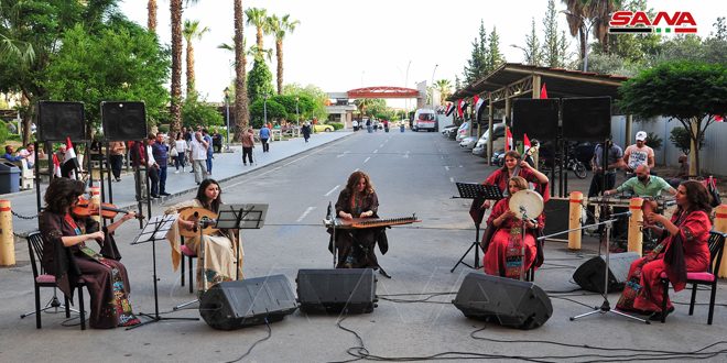 في أمسية صيفية سادها جو من الأمل والسكينة عزفت فرقة تخت شرقي النسائي السوري معزوفاتها ببهو مشفى الأسد الجامعي ضمن الهواء الطلق كتحية شكر وعرفان للكادر الطبي الذي تحمل مخاطر الإصابة بفيروس كورونا من خلال استقباله للحالات المشتبه بها وعلاج أي حالة وافدة إلى المشفى.