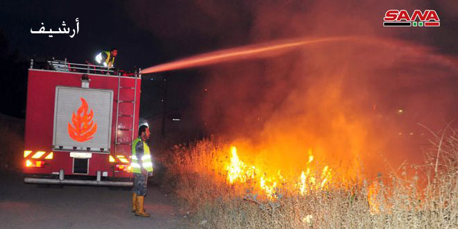أخمد فوج إطفاء درعا 20 حريقا أمس طالت مساحات مزروعة بالقمح والشعير والحمص ومحاصيل أخرى وأشجارا مثمرة وأعشابا في مناطق متعددة من المحافظة.