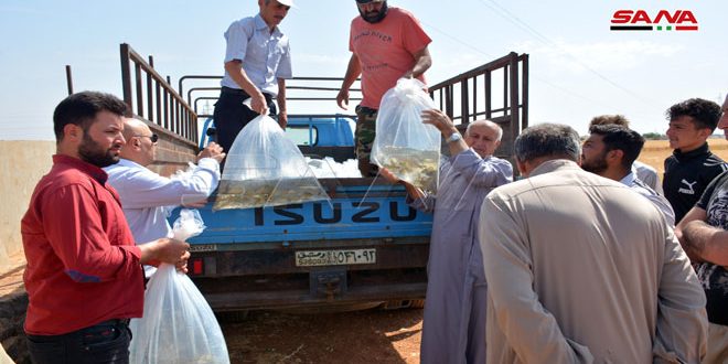 بدأت الهيئة العامة للثروة السمكية بالتعاون مع مديرية زراعة حمص اليوم بتوزيع منحة إصبعيات أسماك على 100مستفيد بمحافظة حمص في إطار خطة الهيئة العامة للثروة السمكية لنشر ثقافة مزارع الأسماك الأسرية.
