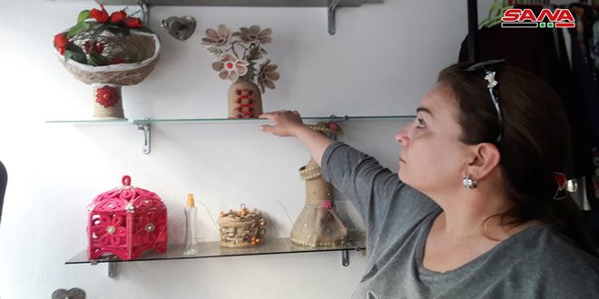 لا يقف الإبداع على حدود معينة حيث يمكن تحويل شيء بسيط إلى تحف فنية جميلة وهو حال السيدة رانيا الحمود التي استخدمت مادة الخيش مادة أولية لتصنيع التحف والصمديات بأشكال متعددة.