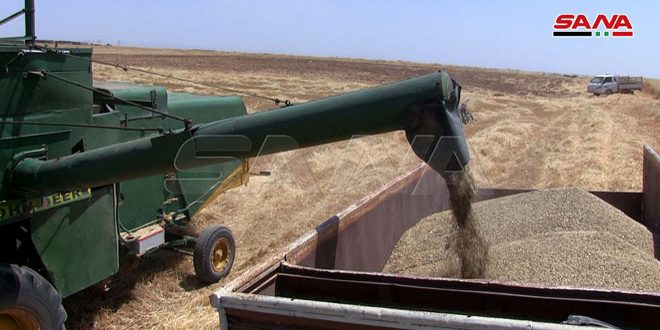 ووفق المهندس سلامة فإن المساحة المحصودة من محصول القمح بلغت 179 ألف هكتار منها 43 ألفاً و 400 هكتار مروياً و 135 ألفاً و500 هكتار بعلاً فيما بلغت المساحة المحصودة بالشعير 367 ألفا و600 هكتار منها 17300 هكتار مرويا و350 ألفا و300 هكتار بعلاً.
