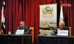 أقامت مؤسسة القدس الدولية-سورية واللجنة الشعبية العربية السورية لدعم الشعب الفلسطيني ومقاومة المشروع الصهيوني وفصائل المقاومة الفلسطينية اليوم محاضرة بعنوان القدس واقع وآفاق للدكتور سليم بركات أستاذ الفكر السياسي بجامعة دمشق وذلك في مركز ثقافي أبو رمانة بدمشق.