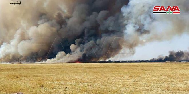 وأدت النيران التي نشبت في الأراضي الزراعية في منطقة رأس العين بالحسكة أمس إلى إتلاف نحو 1000 دونم مزروعة بالقمح واحتراق عدد من منازل المواطنين بعدما امتدت النيران إليها.