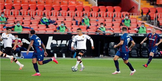 وكان رودريغو مورينو تقدم لفالنسيا في الدقيقة 89 بعد طرد روجر مارتي لاعب ليفانتي في الدقيقة 74.
