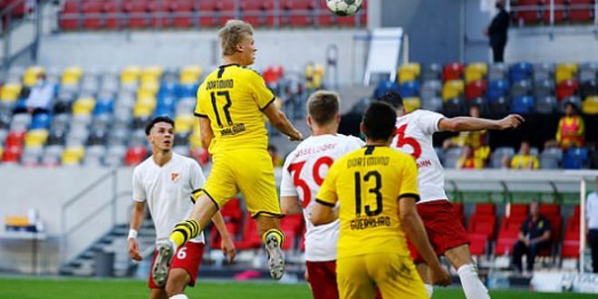 وأحرز البديل النرويجي إيرلينغ هالاند هدف دورتموند في الوقت بدل الضائع من المباراة.