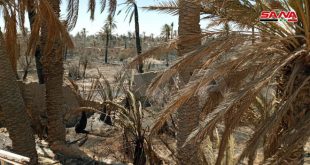 إخماد حريق اندلع في واحة بساتين تدمر التاريخية