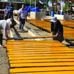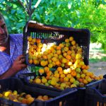منذ ساعات الصباح الأولى تعانق أيادي العمال ثمار المشمش لقطافها وهي المرحلة الأولى لإنتاج مادة قمر الدين وفق محمد بشار جاويش مالك المنشأة والبستان الذي زارته سانا مشيراً إلى أن تأمين الثمار من الفلاحين يعتبر المرحلة الحاسمة في الإنتاج لأن موسم القطاف لا يتعدى الخمسة والأربعين يوماً وإنتاج قمر الدين يتطلب النوعية الأفضل من ثمار المشمش المسمى بـ “المشمش الكلابي” فهو يصلح لصنع العصير والمربى لاحتوائه على كمية عصير جيدة.
