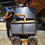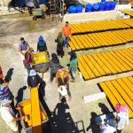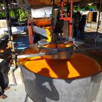 بقبعتها الدائرية ولفحتها زاهية الألوان تنتظر فاطمة أم محمد رئيسة العمال وصول الصناديق وتوريدها إلى الآلات حيث تبدأ مهمتها بالإشراف على فرز الثمار وغسلها آليا بالماء وضخ الهواء وتعقيمها بمادة زهر الكبريت ثم وضعها بماكينة العصير المصنوعة من الكروم ليبدأ العمل على مرحلتين الأولى فصل الثمرة عن البذرة ومن ثم فصل القشور والألياف عن العصير لاستخلاص المادة المطلوبة ليتم وضعها في حوض خاص تخلط به مع مادة القطر الصناعي “جلوكوز” حتى تصبح لينة ومتجانسة وهي عملية مهمة للغاية برأي فاطمة لأن عدم وضع القطر يجعل المادة المنتجة قاسية وذات لون باهت.