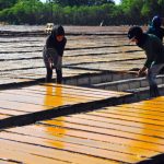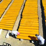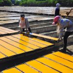 بعد التذويب ترحل المادة المنتجة بالعربات حيث يصب اثنان كيلو من قمر الدين على كل دف ومن ثم تنقل هذه الدفوف وترتب على مساحات كبيرة تسمى “المسطاح” تصل إلى سبعة أو ثمانية دونمات وتوضع بالشمس لمدة خمسة أيام بلياليها لتجف تماماً وتصبح بقوام قمر الدين فتغلف بنايلون استعداداً لنقلها إلى المستودعات.