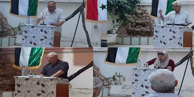 الشاعر ابراهيم الهاشم قرأ قصيدة وطنية “بالشوق ترقب زحفك الأنهار” تغنى فيها ببطولات الجيش العربي السوري وانتصاراته في حين شاركت الشاعرة ميسون جنيات بقصيدتين “قهوة وفنجانين” و “إبرة الوهم” اللتين عبرت فيهما عن مشاعرها العميقة للحبيب.