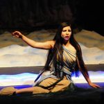 وقدمت الممثلة الشابة روجينا رحمون دور الموجة وعن شخصيتها قالت: “كان هناك صعوبة في أنسنة الموجة وتقديمها للجمهور ولكن من خلال العمل توصلنا إلى بعض الحلول في الأداء والشكل لتصل إلى شريحة اليافعين بشكل صحيح التي يحتاج التعامل معها المزيد من الانتباه لأنها تمزج ما بين عمري الطفولة والشباب” لافتة إلى أن المسرحية جاءت بالعربية الفصحى مع إشعار لشكسبير بطريقة مبسطة بعيدة عن الاستسهال.