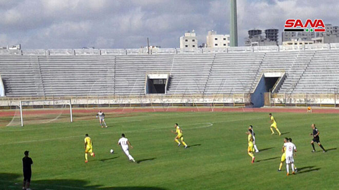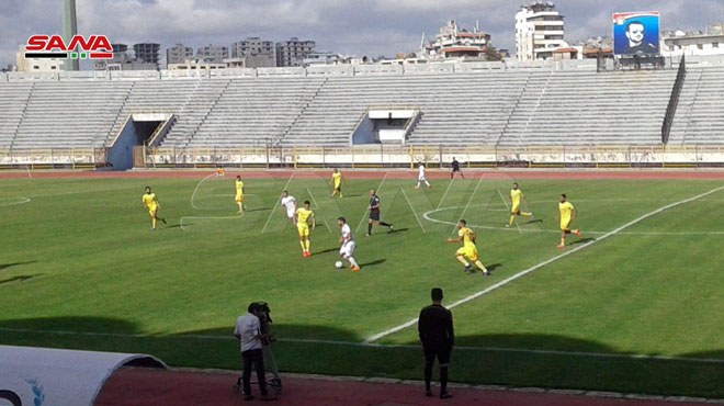 من مباراة تشرين والشرطة في الدوري الممتاز لكرة القدم