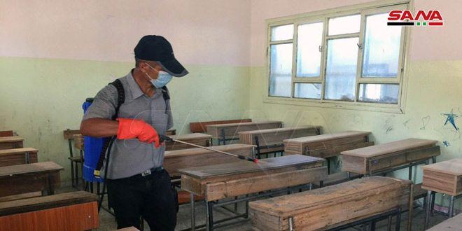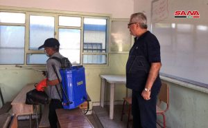 من جانبه أشار رئيس دائرة الصحة المدرسية الدكتور خالد الحسين في تصريح مماثل إلى التوافق بين وزارتي التربية والصحة لإنجاز كل مستلزمات التصدي للفيروس لافتاً إلى أنه تم تشكيل فرق للتعقيم ضمن المراكز الامتحانية وتتم مراقبة العمل على مدار الامتحانات.